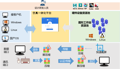 結合數字化設計流程,將設計、仿真(計算、優化、前后處理、CAD設計)應用集中到高性能計算系統上,確保項目涵蓋數字化設計的整個過程。為了保證易用性,高性能計算系統通過瀏覽器,用一個統一的門戶實現:CAD設計和CAE前后處理等三維圖形應用軟件的使用和調度管理、仿真類及優化類應用軟件的使用和調度管理,從而建設一個涵蓋設計、仿真、優化、前后處理統一的綜合應用服務平臺,為設計師提供高效的計算、設計環境。