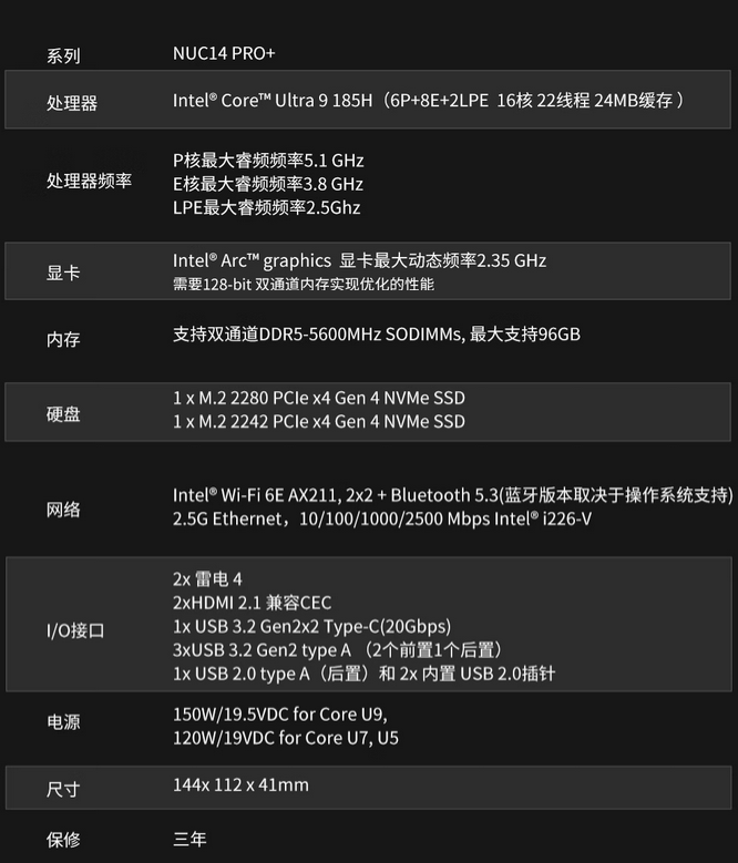 華碩(ASUS)NUC14 Pro 迷你主機(jī)高性能商用AI辦公臺(tái)式機(jī)mini電腦 酷睿Ultra9-185H